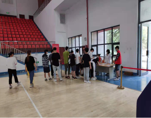 为保证疫苗接种工作的安全顺利,在疫苗正式接种前,校医院潘德才副院长带领本校医护人员查看了各个疫苗接种点的现场布局、设施,仔细询问前期准备、接种安排、后期保障等环节,结合beat365实际情况制定了接种场地布局流程,并安排校医院医护人员参加了三次区卫健委、疾控中心组织的接种医护专业培训。经过科学规划、合理设计,学校接种区设置在体育场进行,接种现场划分有等候区、测温区、签到区、预检分诊区、接种区、留观区和应急处置区。
