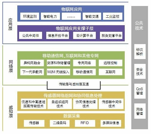 物联网(Internet of Things)指的是将无处不在(Ubiquitous)的末端设备(Devices)和设施(Facilities),包括具备“内在智能”的传感器、移动终端、工业系统、数控系统、家庭智能设施、视频监控系统等、和“外在使能”(Enabled)的,如贴上RFID的各种资产(Assets)、携带无线终端的个人与车辆等等“智能化物件或动物”或“智能尘埃”(Mote),通过各种无线和/或有线的长距离和/或短距离通讯网络实现互联互通(M2M)、应用大集成(Grand Integration)、以及基于云计算的SaaS营运等模式,在内网(Intranet)、专网(Extranet)、和/或互联网(Internet)环境下,采用适当的信息安全保障机制,提供安全可控乃至个性化的实时在线监测、定位追溯、报警联动、调度指挥、预案管理、远程控制、安全防范、远程维保、在线升级、统计报表、决策支持、领导桌面(集中展示的Cockpit Dashboard)等管理和服务功能,实现对“万物”的“高效、节能、安全、环保”的“管、控、营”一体化。