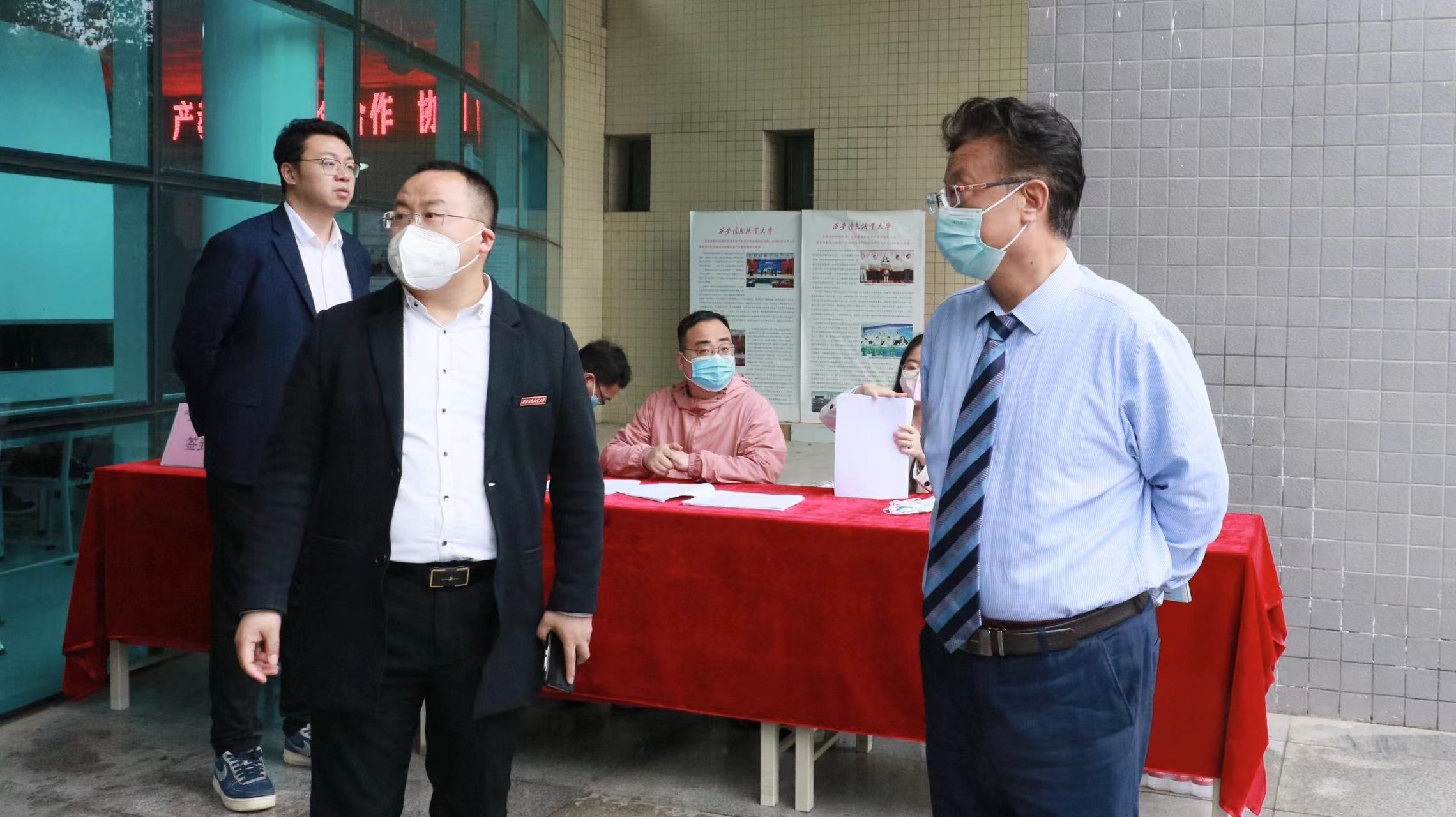 校长张明、党委书记吴介军、副校长曹华民亲临现场与用人单位及毕业生交流
